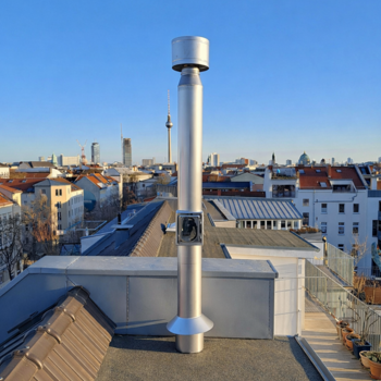 Wie bei unseren einwandigen Systemen verwenden wir ausschließlich hochwertigen Edelstahl mit Molybdän- und Titan-Zusätzen für höchste Korrosionsbeständigkeit und Langlebigkeit.